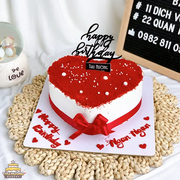 Sự kết hợp hoàn hảo giữa hai tone màu trắng và đỏ trong bánh kem trái tim luôn là sự lựa chọn được rất nhiều người yêu thích. Không cần trang trí quá cầu kì, với màu đỏ rực rỡ của lớp bột kết hợp cùng những hạt cườm trắng đơn giản, đây sẽ là Bánh sinh nhật trái tim phủ bột đỏ mang đến vẻ đẹp ấn tượng và ý nghĩa cho người nhận.